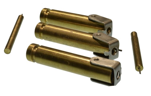 ASSORTED DECAPPING TOOLS, 3 tools with 2 extra pins. Brass and steel.