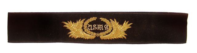 1840'S WEST POINT CADET CAP BAND, Black Velvet, Gold Wreath, Silver USMA, Reproduction.