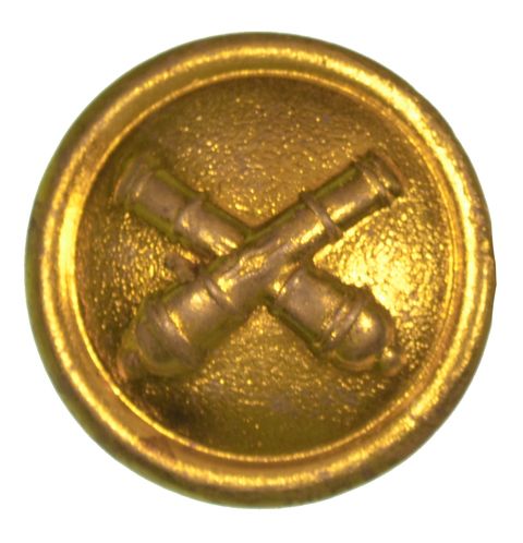 ARTILLERY. Crossed Cannon. Die Struck Brass, 1" Diameter, With Attaching Wires, Original.