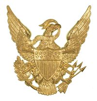 M1881 CAVALRY HELMET PLATE. Eagle, Shield and Crossed Sabers, Reproduction.