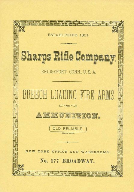 SHARPS RIFLE COMPANY 1879 CATALOG. 40 pages, 5" x 7", soft cover. Catalog illustrates, describes and prices the 1878 Sharps rifles and ammunition. Shows both sporting and target models as well as description of the business, hunters and express models. Illustrations of the various model wind gauge, globe and vernier sights are included. Component part breakdown along with price list and sectional views are shown. Disassembly and assembly instructions are detailed. Separate section describes and illustrates cartridges. Reloading instructions are also given. Fine quality old reprint