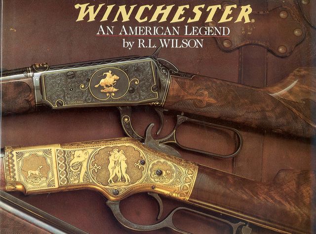 WINCHESTER, AN AMERICAN LEGEND. by R.L. Wilson. 404 pages 11" x 9", Hardbound. The official history of Winchester firearms and ammunition from 1849 to present. Over 300 photographs in Full Color and 165 in black & white. Covers in photo and text every firearm manufactured by Winchester. Details standard models as well as special order and presentation pieces. Cartridge boards, hardware items, toys and tools, along with military models and productions are included. Valuable reference.