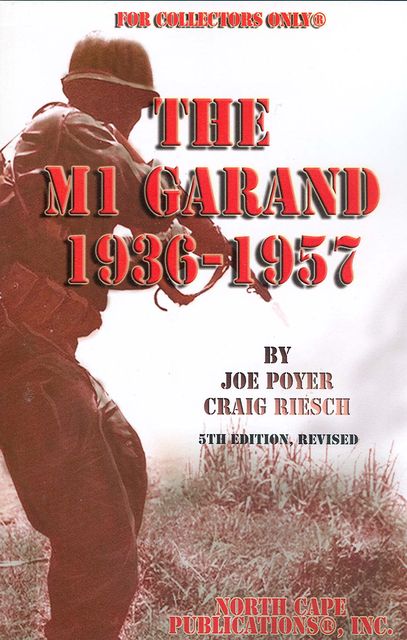 M1 GARAND 1936 TO 1957 by J. Poyer & C. Riesch. 5 1/2 x 8 1/2", 216 pages, perfect bound. A part-by-part by manufacturer by serial number range examination of this famous rifle. Point by point differences, variations, markings, alterations allow the collector to determine proper identification. Covers M1c, M1D, MC52, Nat. match models and the Navy's 7.62 NATO M1. Also includes description and variations on cartridge belts and pouches, bayonets and scabbards, slings, appendages, clips, sights, ammo and telescopic sights. Helps determine if your Garand is original.