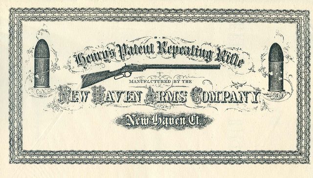 HENRY'S REPEATING RIFLE, MANUAL FOR USE AND CATALOG. 1865, New Haven Arms Co., 5 1/2" x 8 1/2", 52 pages, soft cover. Oliver Winchester's first advertising and testimonials on this repeater contains cross sectional views of Henry rifle along with parts breakdown and price list, specifications, assembly and disassembly, cleaning and Scientific Americans article on breech-loading vs. muzzle loading. Interesting advertising method for early fixed ammunition repeating rifle. Reprint