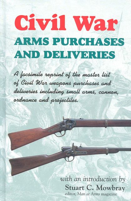 CIVIL WAR ARMS PURCHASES AND DELIVERIES. 312 pages, 6”x 9”, Hardbound. This is the Bible of C.W. arms research known as Exec Doc. #99. This is a comprehensive list of every weapons purchase made by the Union. Items include Muskets, Carbines, Swords, Pistols, Ammunition, Bayonets, Cannon and Accoutrements. Particularly useful for determining how many of a specific weapon would have been available for issue to the troops by a given date in the war