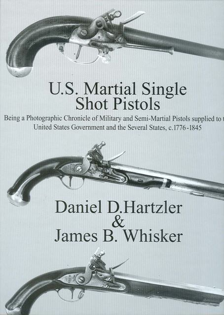 U.S. MARTIAL SINGLE SHOT PISTOLS by P. Hartzler & J. Whisker. 128 pages, 9” x 12”. Photographic history of the single shot pistols such as Aston, North & Cheney, Johnson, North, Springfield, Elgin. Hall, Palmetto Armory, Rappahonnock Forge and state Militia Pistols. Shockingly clear photos show detailed inspectors marks, barrel marks, lockplate stampings and dates. Shows flint, percussion conversions of both U.S. made and foreign import guns.