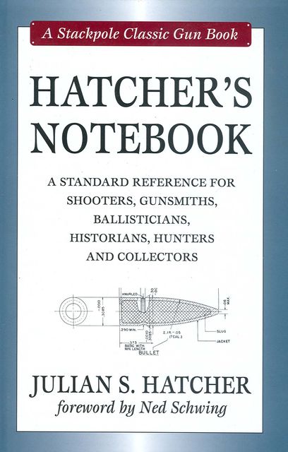 HATCHER NOTEBOOK by Julian Hatcher. 656 pages, 6” x 9”. This is a reprint of the classic and time-honored book. Forward by Ned Schwing. Julian Hatcher was a U.S. Army Major General, technical advisor for the American Rifleman and NRA director from 1922 to 1946. This book addresses the 1903 Springfield and 1917 Enfield. Chapters on barrels, receiver steels, heat treating strengths and weakness of military rifles. Discussions on gun powder, corrosion, triggers and the Pederson Device. Tips on shooting, ballistics, overloads and ranges. 75 photos, 50 illustrations.