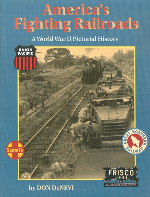 AMERICA'S FIGHTING RAILROADS - A W.W.II PICTORIAL HISTORY by D. Denevi. 8 1/2" x 11", 144 pages, 153 photos, perfect bound. A graphic look at the locomotive, rolling stock, stations, military usage, assembly lines, Alaska routes, streamline troop trains and the men and women who operated them. Great photos of military equipment being transported.