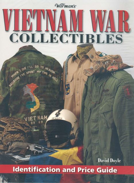VIETNAM WAR COLLECTIBLES, by David Doyle. 254 pages with color images. Contains sections and prices on nearly all Vietnam War artifacts such as small arms, uniforms, equipment, insignia, bayonets, vehicles and much more. Extremely well illustrated with over 900 color photos. Very well organized and easy to look up items in this rapidly growing field.