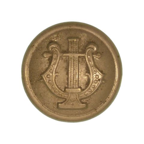 1870-1902 REGULATION ARMY BAND. 4 String Lyre, Ruled Background, Nickle, Tunic, Original.