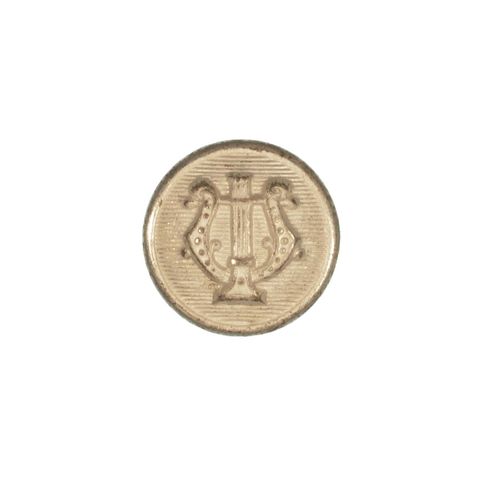 1870-1902 REGULATION ARMY BAND. 4 String Lyre, Ruled Background, Nickle, Small, Original.