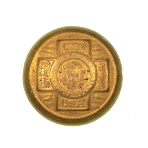 SPANISH AMERICAN WAR VETERANS. Removable Staff Shell with Sliding Plate to Place Over Civilian Coat Button. Cross w/ CUBA,USA. Gilt, Small (*VN-26) Rare, Original.