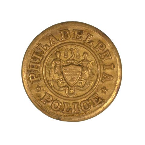 PHILADELPHIA POLICE BUTTON, 1” Brass Overcoat, WWII Era, Original.