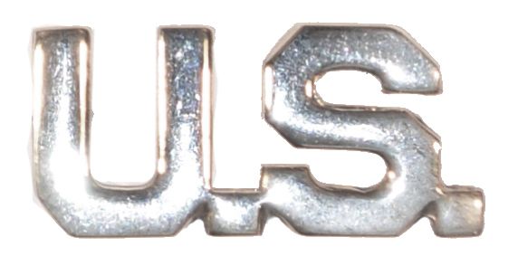 CIRCA 1960'S U.S. COLLAR DEVICE. Letters U.S. Nickle Finish, Clutch Back, Original.