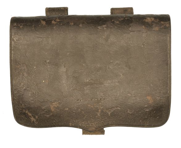 CIVIL WAR ARMY PISTOL CARTRIDGE BOX. Leather box and strap in overall good condition with leather front pouch. All stitching and rivets in sound condition, Original.