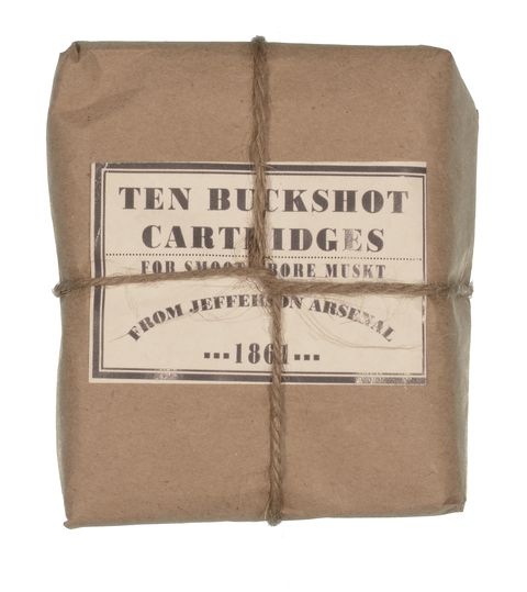 CIVIL WAR .66 - .72 CALIBER BUCKSHOT INERT DUMMY CARTRIDGE ARSENAL PACK, Rolled paper around projectiles and filled with course black sand. Perfect for displays and presentations. 10 rounds wrapped in an Arsenal wrapper, Reproduction.