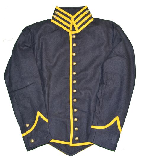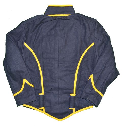 CIVIL WAR CAVALRY SHELL JACKET. Blue Wool, Yellow Trimmed, Complete with Eagle “C” Buttons, Reproduction.