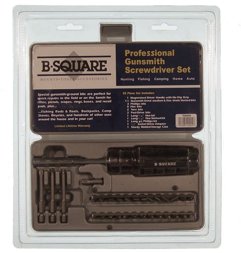 B-SQUARE PROFFESIONAL GUNSMITH SCREWDRIVER SET, 32 pieces, Includes Slotted, Phillips, Hex, Torx Tips. Magnetized with Non Slip Grip Handles