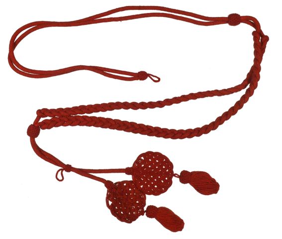 ARTILLERY, Red. Wool Mohair Braid With Suspended Woven Lozenges, Tassels, And Double Cord For Shoulder. Original.