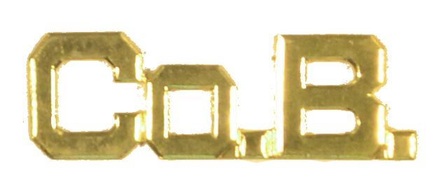 M1905-WW2 OFFICER'S COMPANY LETTER COLLAR DEVICE: CO. B. 1/2" High, Gilt, Clutch Back Fasteners, Original.