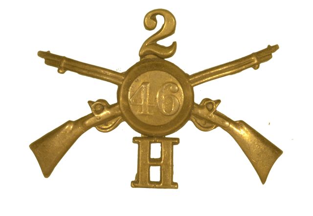 NYS MILITIA SEP CO. CAP INSIGNIA, Crossed Rifles, 46 in Center, Various Units, Original.