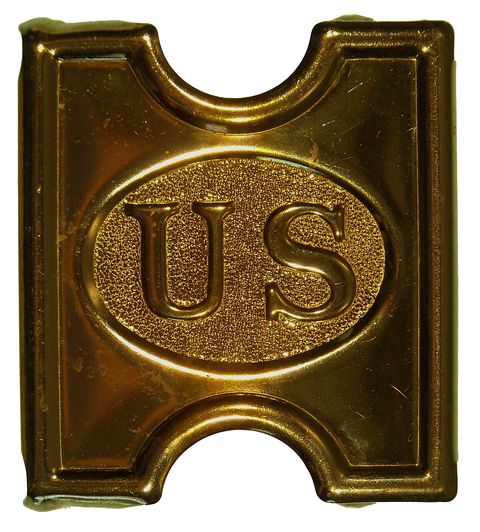 U.S. REGULATION (US) RIFLE CARTRIDGE BELT SIZE, Die Struck Brass, Embossed As Described, Polished And Complete With Belt Catch, Reproduction.