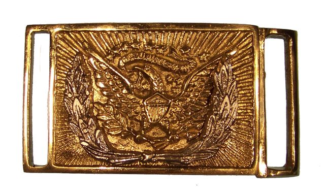 C.W. EAGLE BELT PLATE. Cast Brass With Applied Nickle Wreath. Complete With Belt Catch, Reproduction.