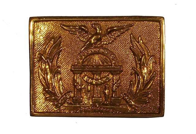 CIVIL WAR GEORGIA BELT BUCKLE, 3 attaching hooks, cast brass, Reproduction.