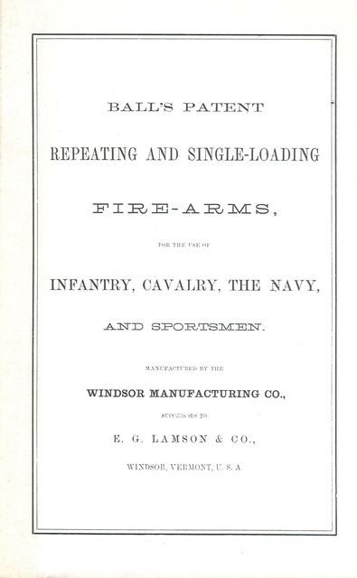 BALLS PATENT REPEATING AND SINGLE LOADING FIREARMS FOR USE OF INFANTRY, CAVALRY, THE NAVY AND SPORTSMAN 1866