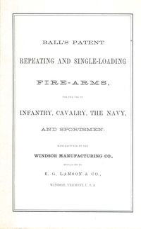 BALLS PATENT REPEATING AND SINGLE LOADING FIREARMS FOR USE OF INFANTRY, CAVALRY, THE NAVY AND SPORTSMAN 1866. 6" x 9", 12 pages, soft cover, reprint. Report of the field trials of 1865 which adopted this firearm. Complete description of the operation, function and use, directions for loading and firing, cleaning, and disassembly