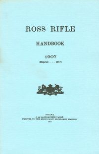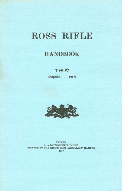ROSS RIFLE HANDBOOK 1907. Ottawa, Canada 1917. 6" x 9", reprint, 24 pages, soft cover. Official manual of the Markk 11 straight pull rifle. Book details complete parts breakdown, description of rifle, stripping and assembly of bolt, Sutherland sights, sectional views of the bolt assembly, and comes with a fold out plate showing sectional view of complete gun