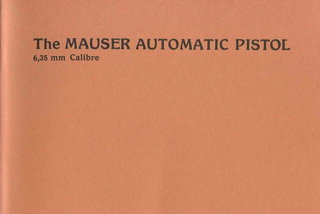 THE MAUSER AUTOMATIC PISTOL 6.35MM CALIBRE. 5" x 7", 29 pages, soft cover. Reprint of the Waffenfabrik Mauser, Obendorf, manual in English, circa 1930's. Illustrates and describes all parts, operation, loading and unloading, disassembly and assembly, penetration effects, etc. Photo illustrated with total parts breakdown and identification