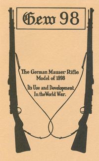GEW-98 THE GERMAN MAUSER RIFLE MODEL 1898. Its Use and Development in WW1. 5 1/2" x 8 1/2", 20 pages, soft cover. Comprehensive study of this famous weapon based on reference material obtained from Springfield Armory, West Point and Army supply bases. Illustrated with line drawings depicting the basic types and appendages. Special section illustrates and describes the 31 bayonet variations. The only complete work covering this subject
