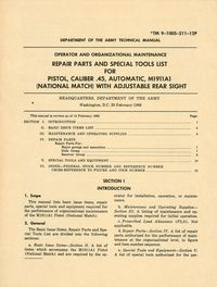 DEPARTMENT OF THE ARMY TECHNICAL MANUAL TM9-1005-211-12P OPERATOR AND ORGANIZATIONAL MAINTENANCE, REPAIR PARTS AND SPECIAL TOOLS LIST FOR PISTOL, CALIBER .45 AUTOMATIC, M1911A1 (NATIONAL MATCH) WITH ADJUSTABLE REAR SIGHT. HQ DEPT OF ARMY 1968