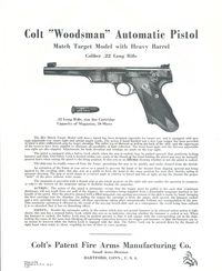 COLT WOODSMAN AUTOMATIC PISTOL CAL.22, Reprint of the Original Instruction Manual. Photo illustrated parts breakdown and identification along with complete detailed specifications of the arm. Operation and care are detailed as well as assembly and disassembly instructions.