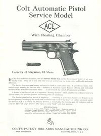 COLT ACE SERVICE MODEL AUTO PISTOL CAL.22, Reprint of the Original Instruction Manual. Photo illustrated parts breakdown and identification along with complete detailed specifications of the arm. Operation and care are detailed as well as assembly and disassembly instructions.