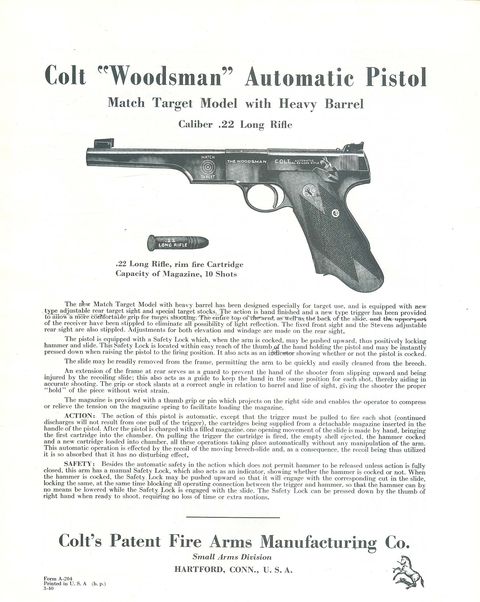 COLT AUTOMATIC PISTOL, POCKET MODEL CAL.32 & .380, HAMMERLESS, Reprint of the Original Instruction Manual. Photo illustrated parts breakdown and identification along with complete detailed specifications of the arm. Operation and care are detailed as well as assembly and disassembly instructions.