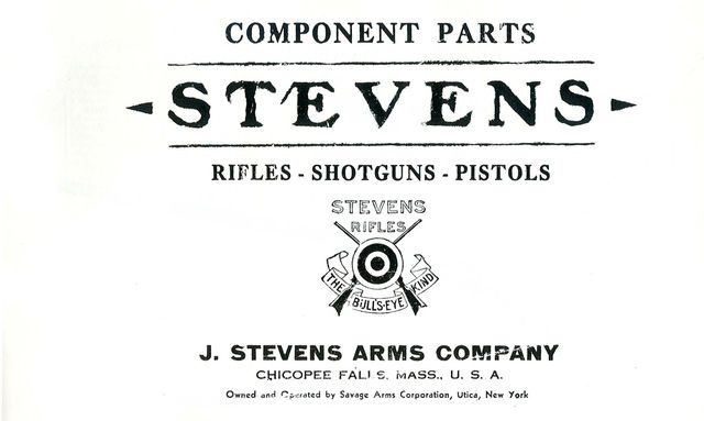 1931 J. STEVENS ARMS COMPONENT PARTS CATALOG FOR RIFLES, SHOTGUNS, PISTOLS. 24 pages, 9" x 6", soft cover, reprint. Complete illustrated breakdown of component parts, identified and priced for #'s 330, 335, 311, 315, 3151, 215, 94, 95, 96, 105, 107, 116, 117, 85, 89, 948, 958, 106, 108, 44, 414, 70, 71, 17, 20, 27, 12, 75, 66, 26, 26 1/2, 14 1/2, 11, 3510, 51, 52, 53, 48, 49, 50. Excellent reference for part replacement on the above Rifles, Shotguns, and Pistols
