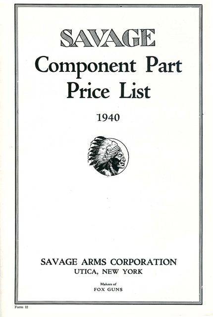 SAVAGE ARMS COMPONENT PART LIST 1940