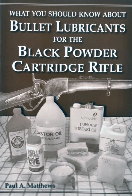 WHAT YOU SHOULD KNOW ABOUT BULLET LUBRICANTS FOR THE BLACK POWDER CARTRIDGE RIFLE by Paul A Matthews. 96 pages with black and white images. Contains the following chapters: Characteristics of a Good Bullet Lubricant for the BPCR, How to Determine the Melting Point,The Choice Components, How to Render Fat into Tallow, Equipment for Making Bullet Lubricants, How to Saponify a Bullet Lubricant, My Two Best Black Powder Bullet Lubricants, Linseed Oil? Are You Kidding?, Why Weigh the Components?, Testing the Black Powder Bullet Lubricant, Does a Bullet Lubricant Really Make a Difference in Accuracy?, and The Scientifically Manufactured Bullet Lubricant.
