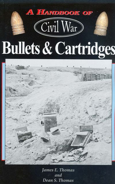 HANDBOOK OF CIVIL WAR BULLETS AND CARTRIDGES by James & Dean Thomas, 5 1/2" x 8 1/2", 76 pages, soft cover. 100's of small arms bullets and cartridges are photo illustrated and identified. Pinfire, rim fire and combustible are shown as well as Minie designs and rare types. Section on cartridge wrappers, Enfield .577 cavity markings, and weights & dimensions. Excellent reference