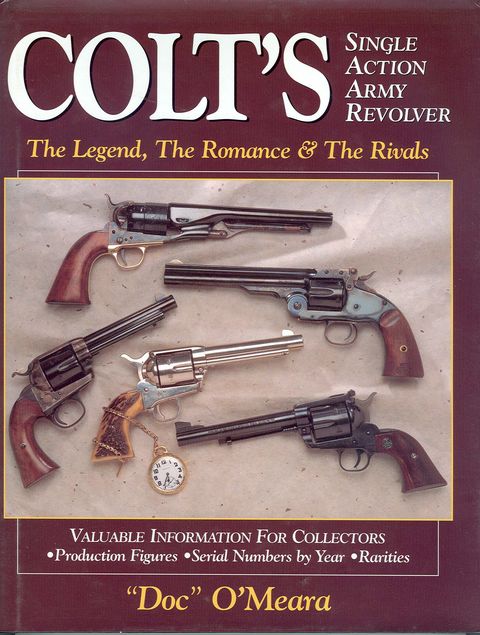 COLT’S SINGLE ACTION ARMY REVOLVER, THE LEGEND, THE ROMANCE & THE RIVALS. By “Doc” O’Meara. 160 pages, 8½”x 11”. 250 B/W photos, 16-page color section. Comprehensive analysis of all Single Action models Including Sheriffs models, Bisley, Buntline, New Frontier, Colt Scout, as well as rare specimens and the people who owned them. Chapters on the guns of Tom Mix and John Wayne and manufacturers Ruger, Cimmarron and Uberti. Special and engraved models are discussed and illustrated. Production records of the 19th and 20th Century for cartridge and cap and ball models are included. Excellent reference