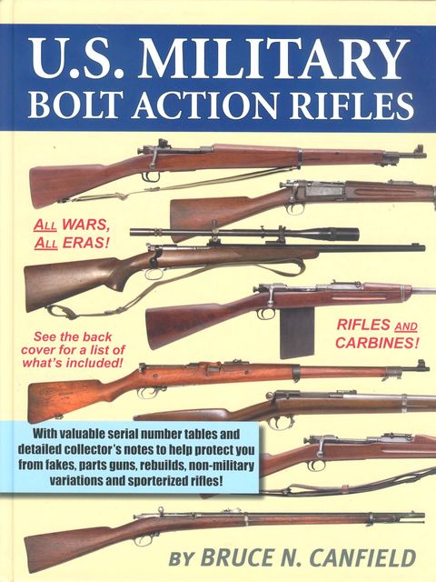 U.S. MILITARY BOLT ACTION RIFLES by Bruce N. Canfield. 429 pages with Black and White Images. A supurb book on US Military Bolt Action Rifles. Details rifles from the Civil War through modern times. Includes Ward Burtons, Remington Keenes, Remington Lees, Krags, 1903 Springfields, 1917 Enfields, Lee Navies and much more. Extremely well illustrated with a wealth of information on each rifle and carbine. Also includes bayonets, slings, web equipment, scopes and other accessories.
