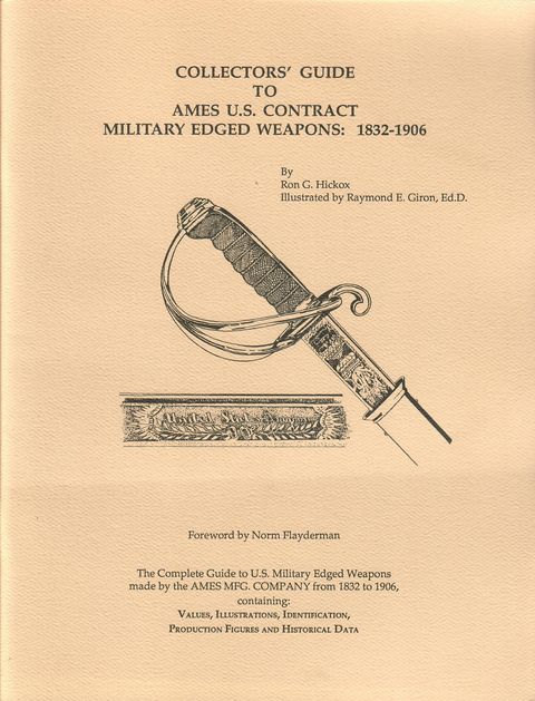 COLLECTOR'S GUIDE TO AMES US MILITARY CONTRACT EDGED WEAPONS: 1832-1906 by Ron G Hickox. 70 pages with black and white images. Well illustrated with a wealth of information on identifying different swords, bayonets and knives. Also contains copies of original invoices and other period documents. 1992 edition.