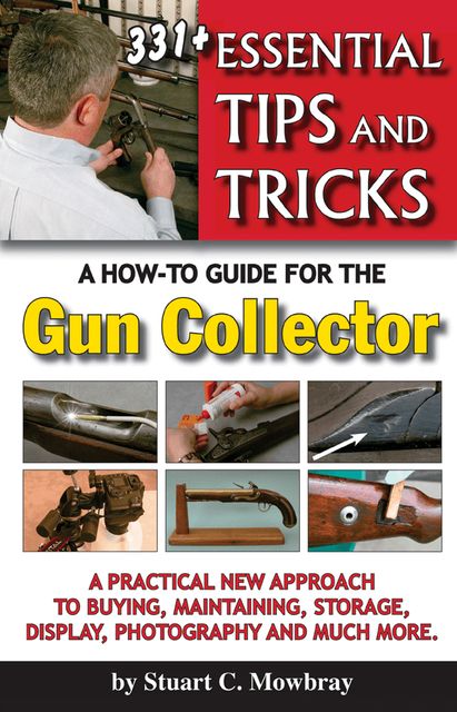 331+ ESSENTIAL TIPS AND TRICKS: A HOW TO FOR THE GUN COLLECTOR, by Stuart C Mowbray. 272 pages with color images. A full color guide to the exciting world of gun collecting, covering all of the tools and techniques you will need. This is a practical, hands-on approach that gives specific instructions and detailed, step-by-step photographs. Everything from gun photography to detecting refinishes can be found in this comprehensive new reference book.
