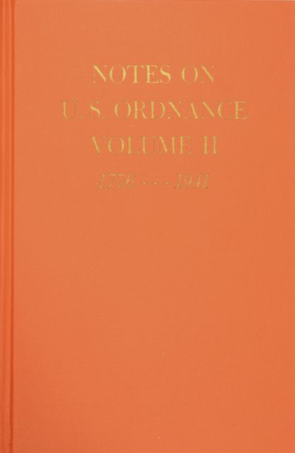 NOTES ON US ORDNACE VOLUME II by James E Hicks. Hardcover, 252 pages with black and white drawings. Details regarding every sort of weapon from the pistol to the heaviest coast artillery. Fully described and illustrated are small arms from Revolutionary muskets to semi-automatic rifles and modern revolvers; machine guns from Gatling guns to Browning’s BAR; famous types of cannons, 75mm, howitzers, modern mortars, and anti-aircraft; all types of combat tanks and mobile mechanized units; and aircraft armament and bombs.