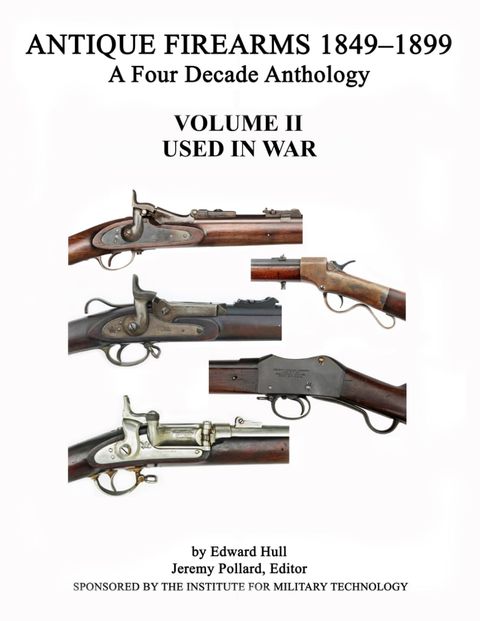 ANTIQUE FIREARMS 1849-1899 - VOLUME II USED IN WAR by Edward Hull. 220 pages with black and white images. This second volume of the series focuses on the history of some American firearms inventions which were actually issued to soldiers and sailors in wartime. Firearms inventors have produced many innovative designs, yet few have been sufficiently practical that they were made in quantity. Threats of war, or actual war, enlivened inventors to develop new ideas that make use of the always evolving state of technology. New precision machinery, improved metallurgy and continued scientific study have always combined to increase the lethality of military weapons. This is the history of some of the weapons that went to war in the mid to late 1800s, an era included several major conflicts: the American Civil War, the Franco-Prussian War, the Spanish Carlist Wars, and the War of the Pacific (Guerra del Pacifico). Also discussed are some inventors who produced multiple designs with only one or two reaching actual production: their less successful ideas are described as well. Included I'm this category are Hiram Berdan’s many breechloader designs, the Starr-Walcott carbines and several Maynard tape primer musket ideas. Each inventor made his contribution, large or small, to the art of war. The chapters include the following subjects: Colt Navy revolving rifles Peabody and Remington rifles for Peru Needham conversion muskets Peabody conversion muskets Roberts conversion muskets Starr and Wolcott carbines Ballard carbines Lindner carbines and rifles converted to breechloading Musket conversions to Maynard percussion tape primer Hiram Berdan’s many breechloaders Springfield Armory: Models 1866 & 1868, Joslyn & Spencer alteration rifles