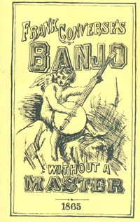 FRANK CONVERSE'S BANJO WITHOUT A MASTER, 1865. 4 1/4" x 6 1/2", 96 pages, soft cover, reprint. A choice collection of banjo solos, songs, jigs, reels, walk arounds, etc. Progressively arranged, plainly explained, enabling the learner to become a proficient banjoist without the aid of a teacher. Fascinating early self teaching music aid