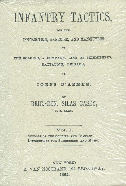 INFANTRY TACTICS, by Brig-Gen. Silas Casey. Instruction, exercise and manoeuvres of the soldier, company, battalion and brigade. Originally printed by D. Von Nostrand, NY 1865