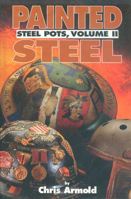 PAINTED STEEL: STEEL POTS, VOLUME II, by Chris Armold. Hardcover. 383 pages with color and black and white images. A definitive guide to US military steel Helmets. Includes sections on WWI, WWII, Marine Corps, Combat Vehicle Crew, Airborne, and Naval Helmets. Also includes sections on fakes and reproductions. Numerous photographs detail the many unit or special markings on helmets. Short Divisional histories are given for division marked helmets.